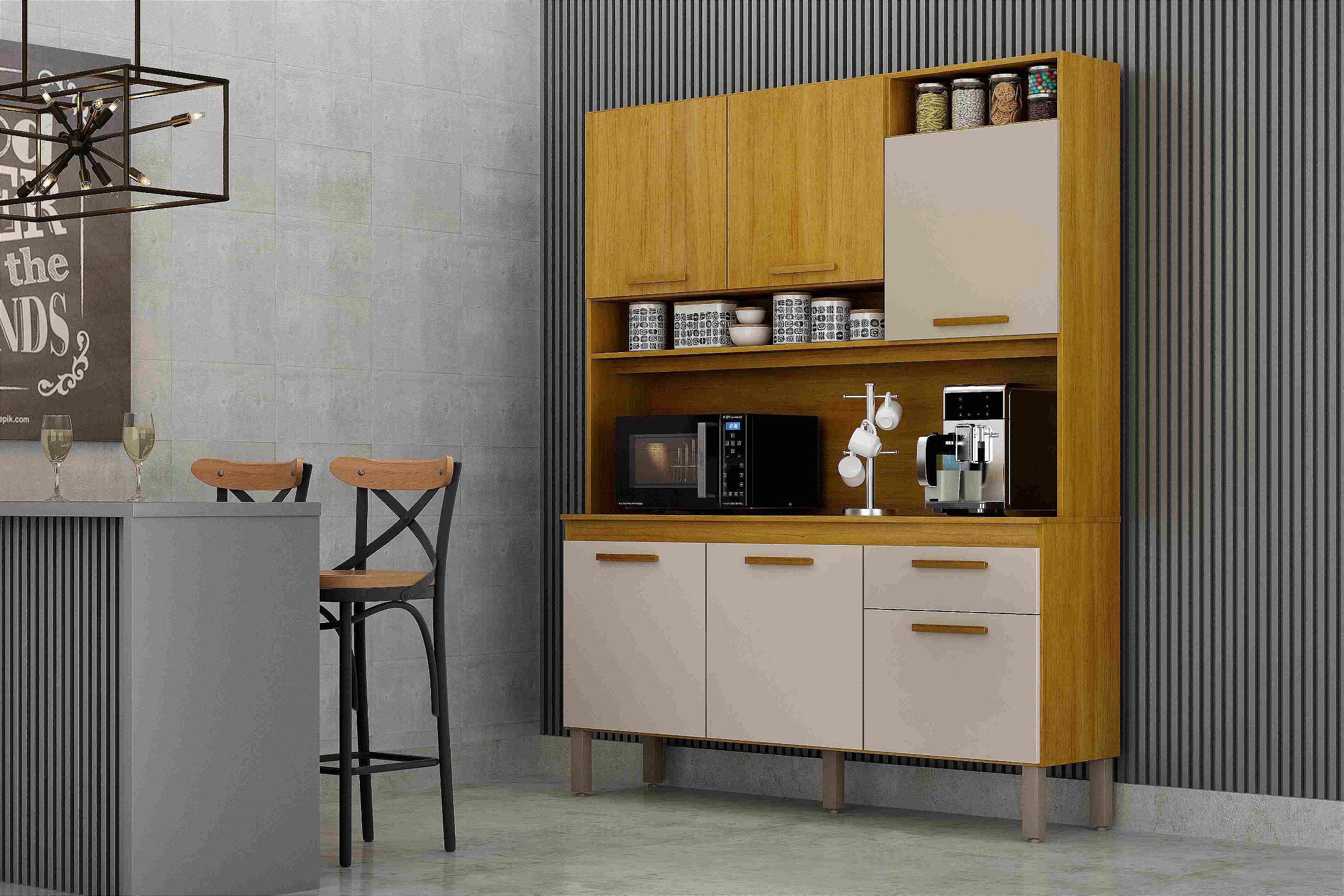 Com 6 portas e 1 gaveta com corrediças telescópicas, o Kitão Noor facilita a organização do seu dia a dia. O nicho decorativo permite expor objetos ou eletroportáteis, enquanto os pés ajustáveis garantem estabilidade em diferentes tipos de piso.