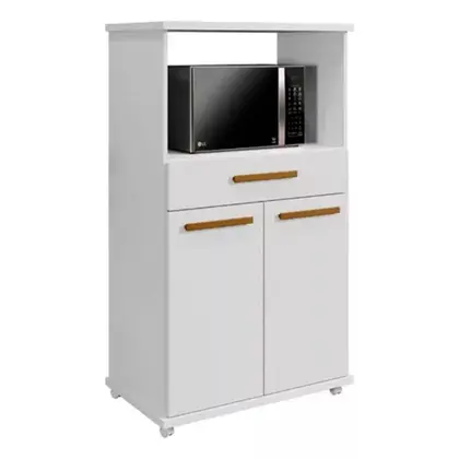 Este balcão é perfeito para diversos ambientes e funcionalidades. Utilize para organizar sua cozinha com praticidade, versatilidade e beleza. Possui espaço para Micro-ondas e Forno Elétrico, 2 portas com dobradiças metálicas, ampla gaveta, prateleira interna e rodízios para facilitar a locomoção, tudo isso para garantir mais facilidade no seu dia a dia. Este balcão foi desenvolvido para combinar com qualquer decoração, deixando o seu ambiente mais bonito e funcional.