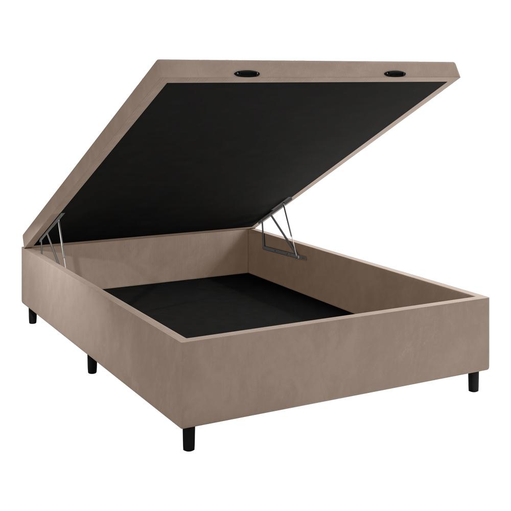 Box Baú Casal Blindado Veludo Bege 138x188x35 Portobel