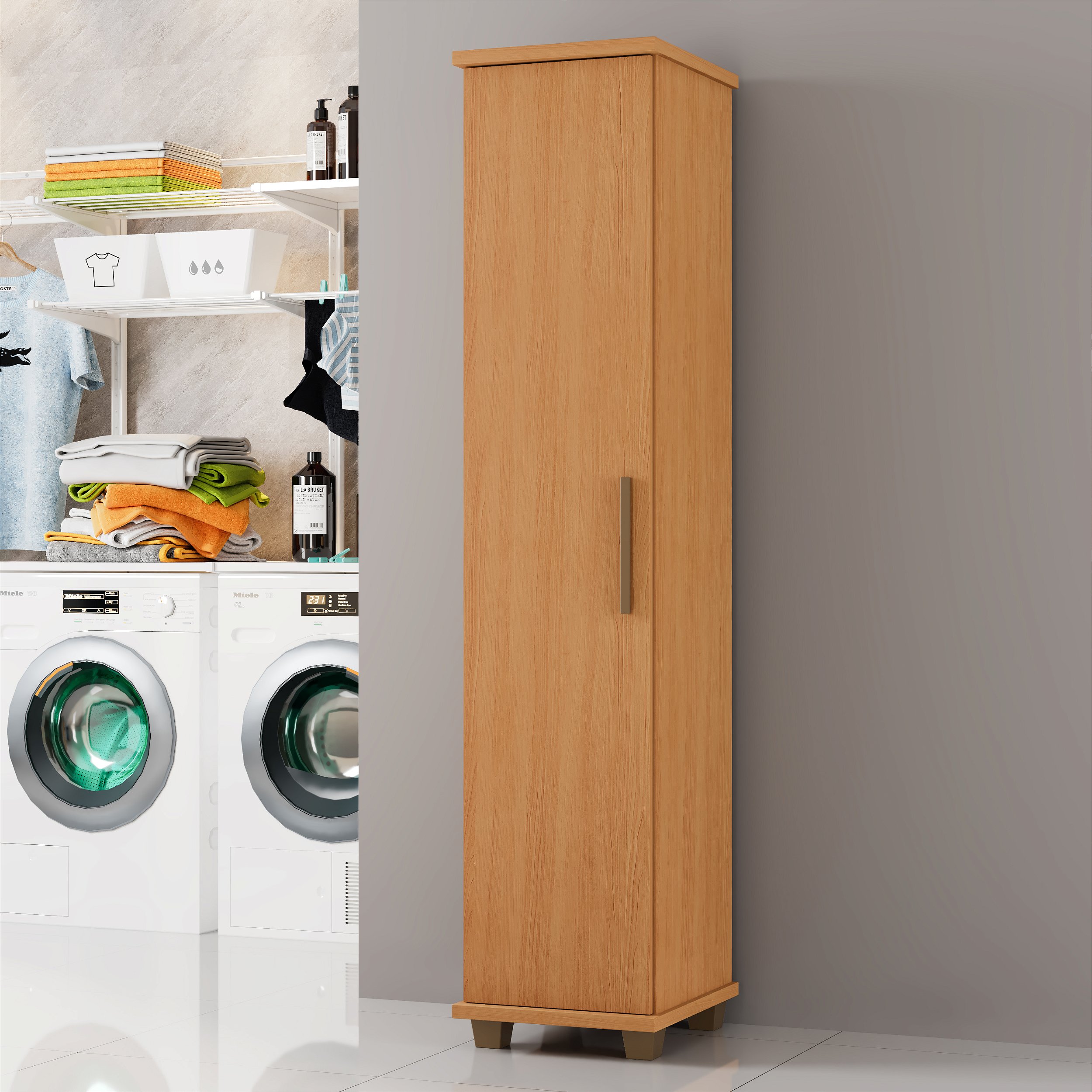 Que tal este belíssimo armário multiuso, prático e versátil vai bem em diversos ambientes da casa, possui 4 prateleiras seno uma removível e suporte para vassouras/rodos com puxadores ergonômicos cromados e um acabamento impecável, muito charmoso.