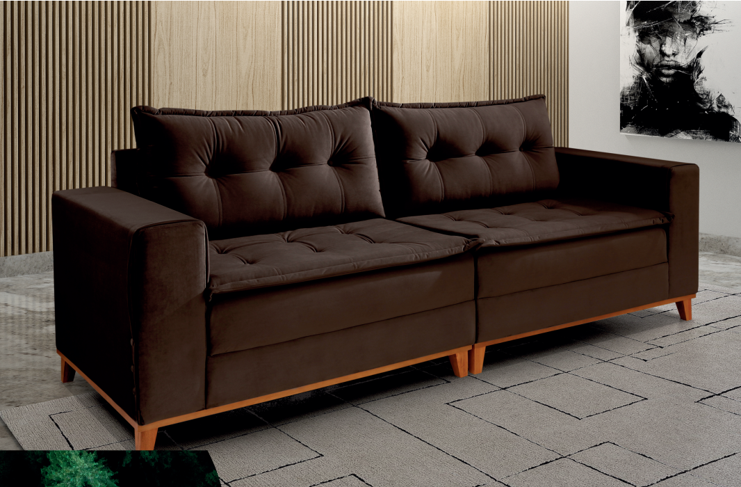 Sofá Bahia Salvador Pam Veludo Marrom