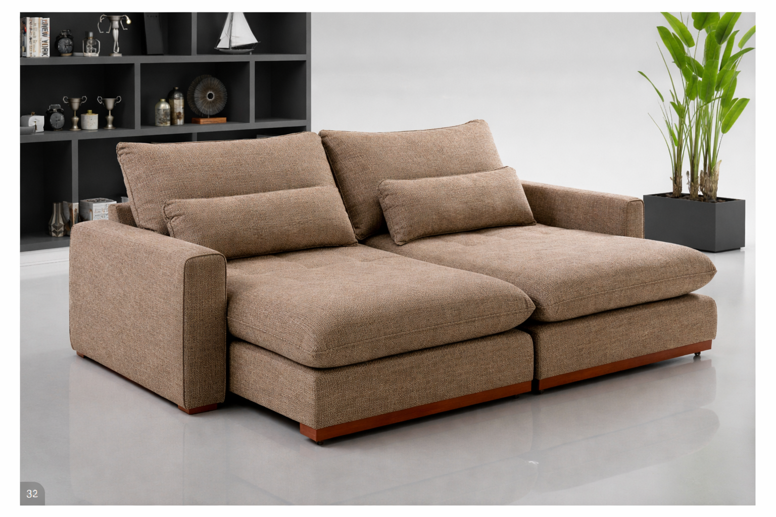 ASSENTO: Pillow 20cm – Espuma D26 – Mola Ensacada de 15 cm – Manta siliconada - Detalhe em madeira de eucalipto tratado – Retrátil de metal;