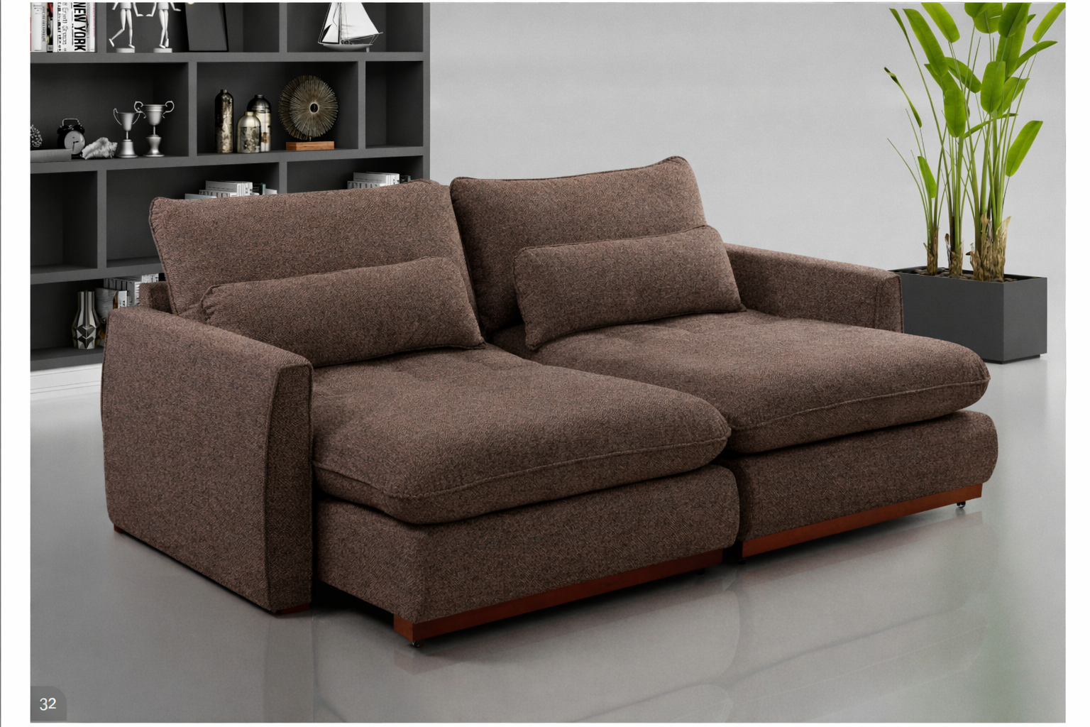 ASSENTO: Pillow 20cm – Espuma D26 – Mola Ensacada de 15 cm – Manta siliconada - Detalhe em madeira de eucalipto tratado – Retrátil de metal;