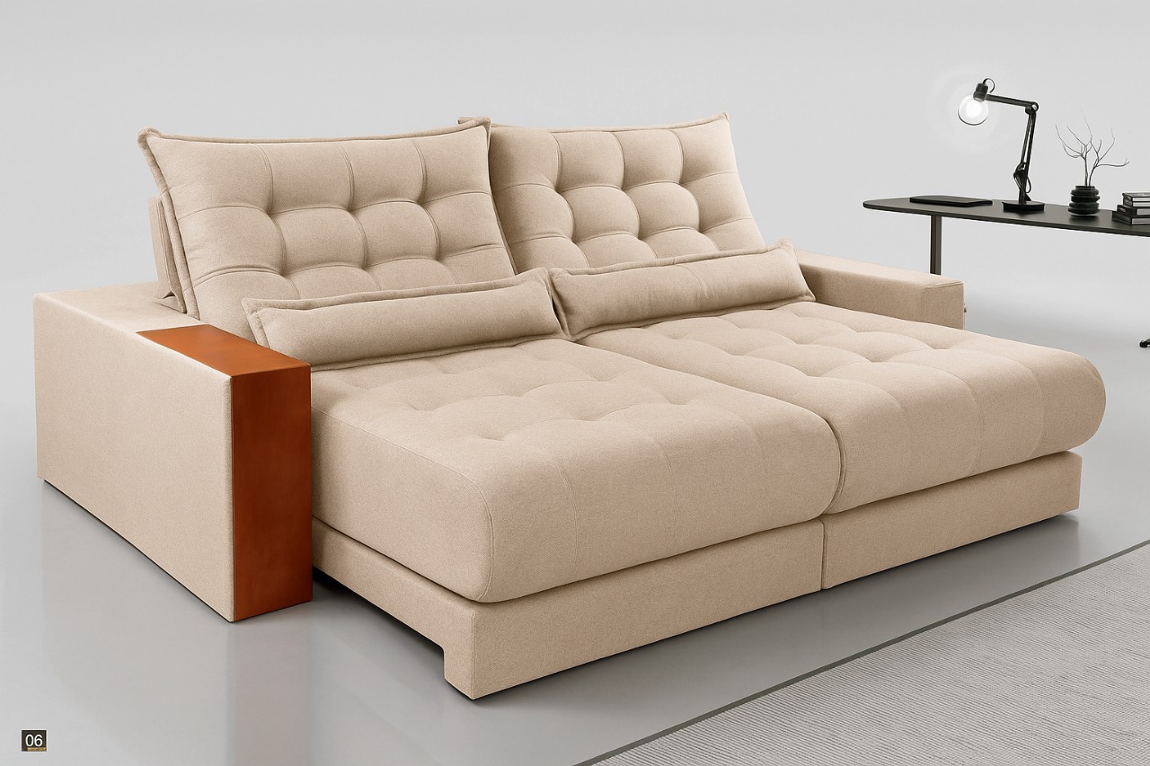 BRAÇO: Espuma D26 - Detalhe em madeira de eucalipto tratato;