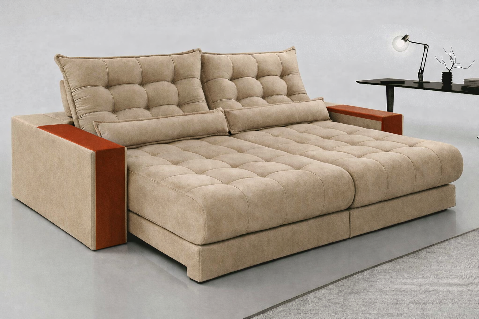 BRAÇO: Espuma D26 - Detalhe em madeira de eucalipto tratato;