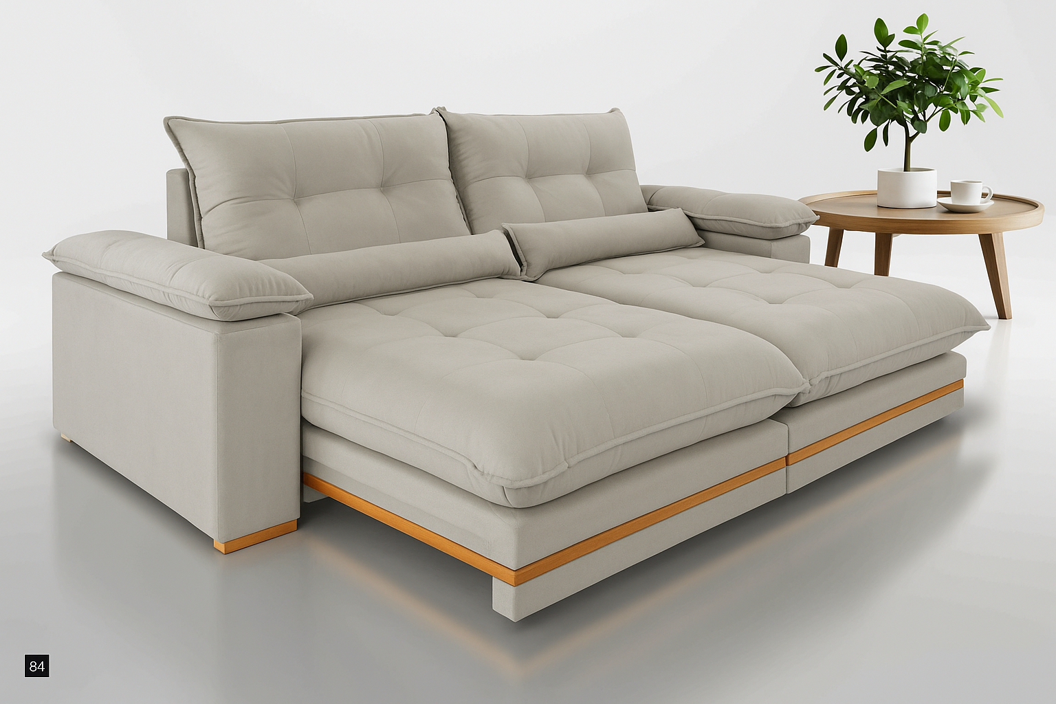 ASSENTO: Pillow 32cm - EPS - Mola ensacada de 15cm - Detalhe de madeira de eucalipto tratado - Espuma D28 - Manta siliconada - Retrátil de metal;