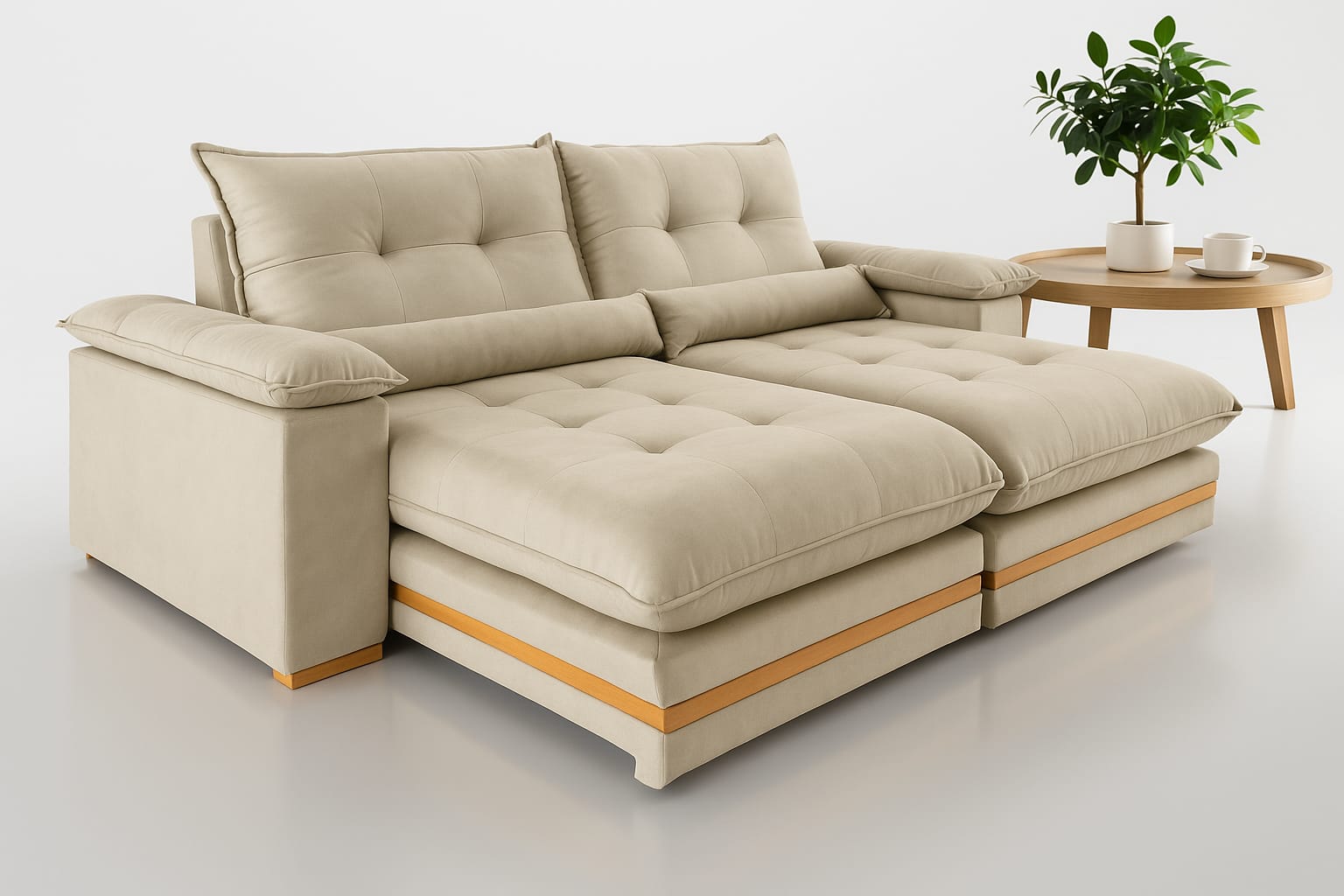 Sofá Ibiza Evidence 1,00 Veludo Bege