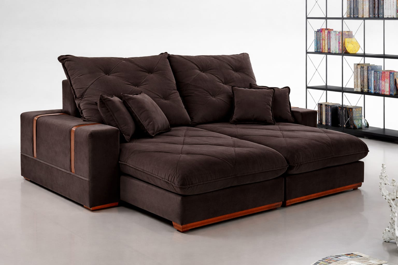 ASSENTO: Pillow 25 cm – EPS – Mola ensacada de 15 cm – Espuma D28 – Manta Siliconada – Detalhe em madeira de eucalipto tratado – Retrátil de metal;