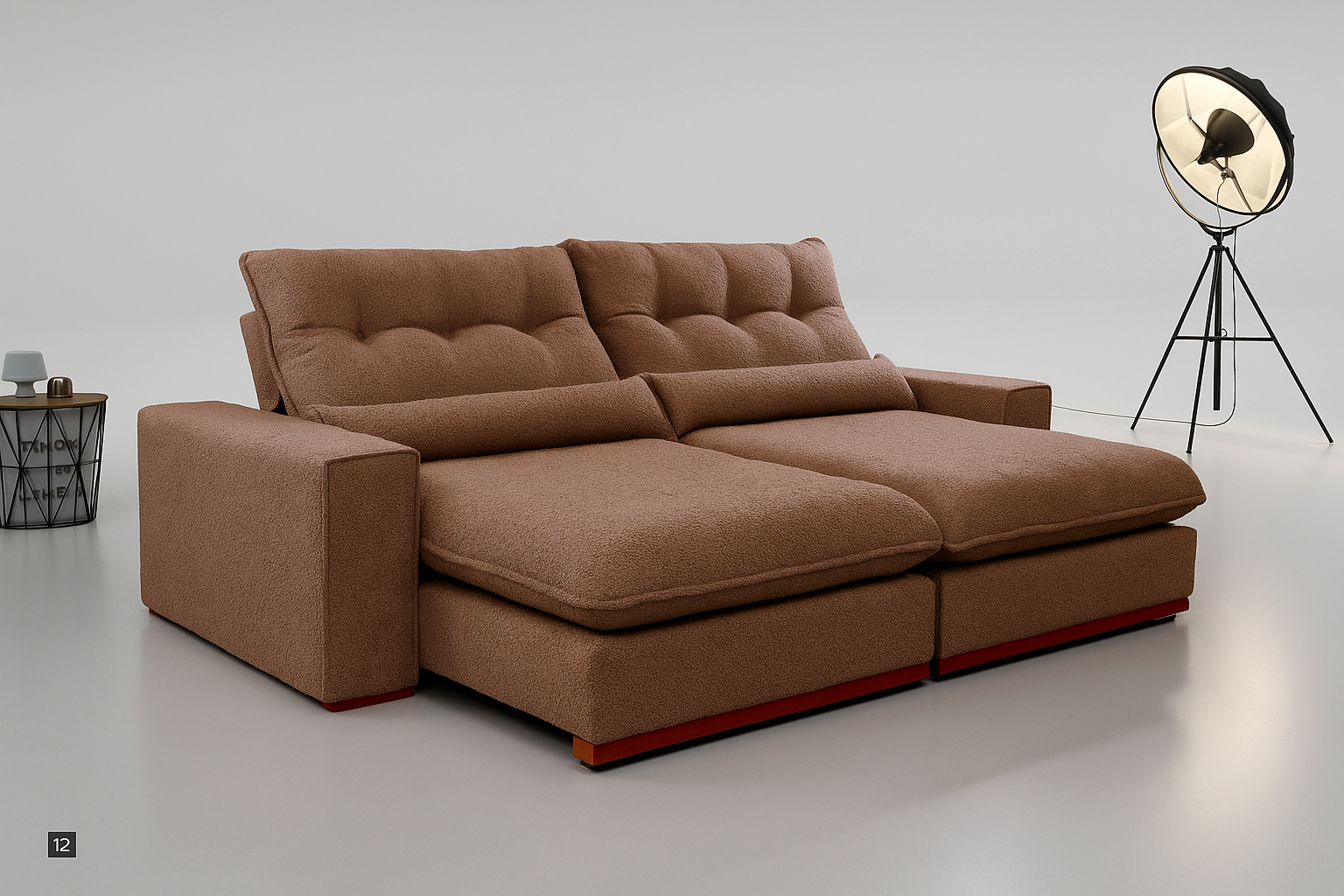 ASSENTO: Pillow 25cm - EPS - Mola ensacada de 15cm - Espuma D28 - Manta siliconada - Detalhe de madeira de eucalipto tratado - Retrátil de metal;