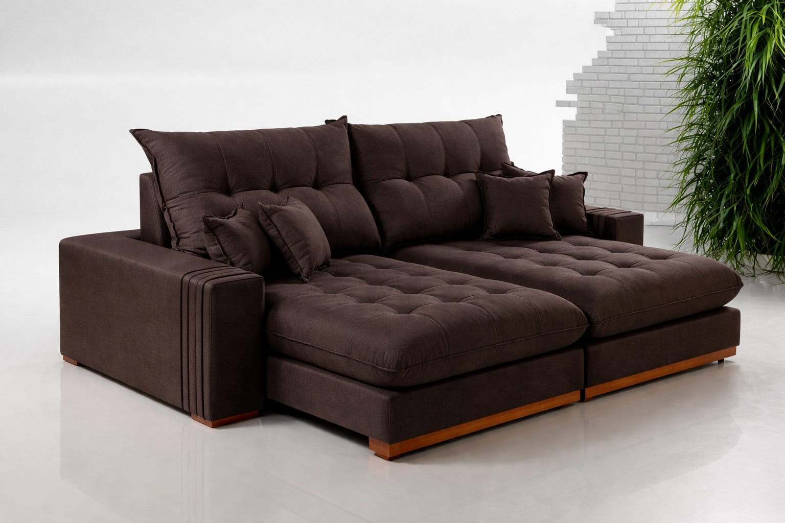 ASSENTO: Pillow 25 cm – EPS – Mola ensacada de 15 cm – Espuma D28 – Manta Siliconada – Detalhe em madeira de eucalipto tratado – Retrátil de metal;